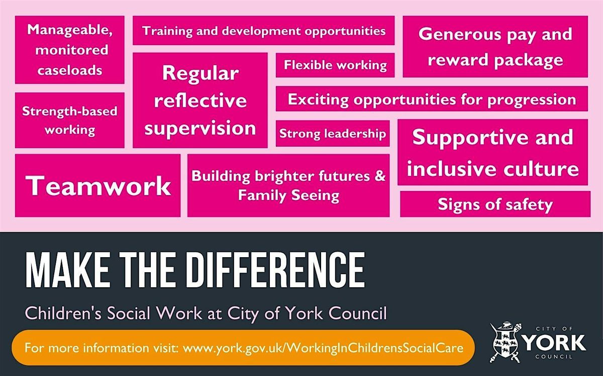 Come and meet our recruiting managers and hear about how you could join us in making a difference for the children, young people and families of York. We’d love to meet you and share with you our vision and all the benefits of working in this "Outstanding" authority.
