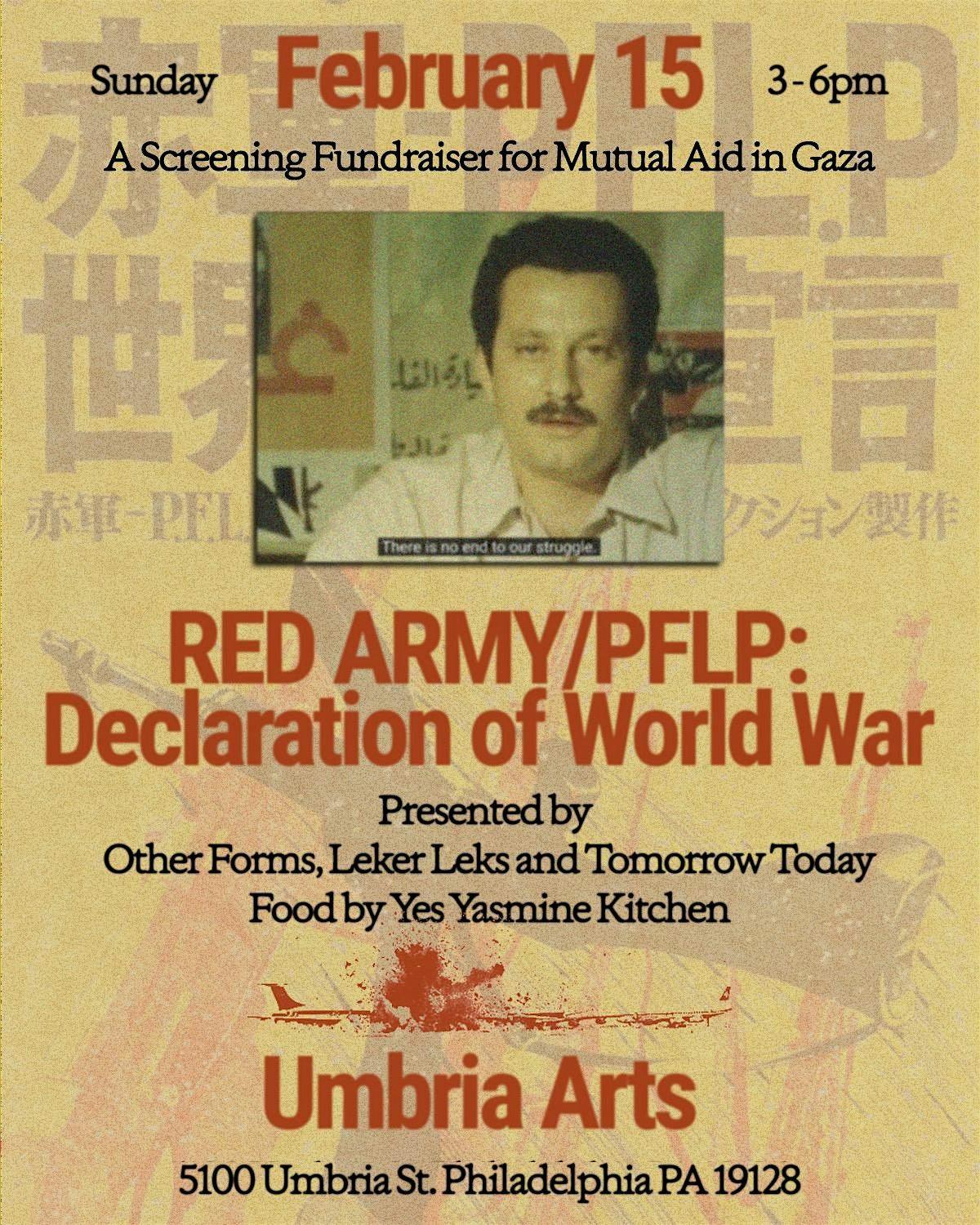 Join us Sunday, February 15, from 3–6pm, for a screening of Red Army/PFLP: Declaration of World War.