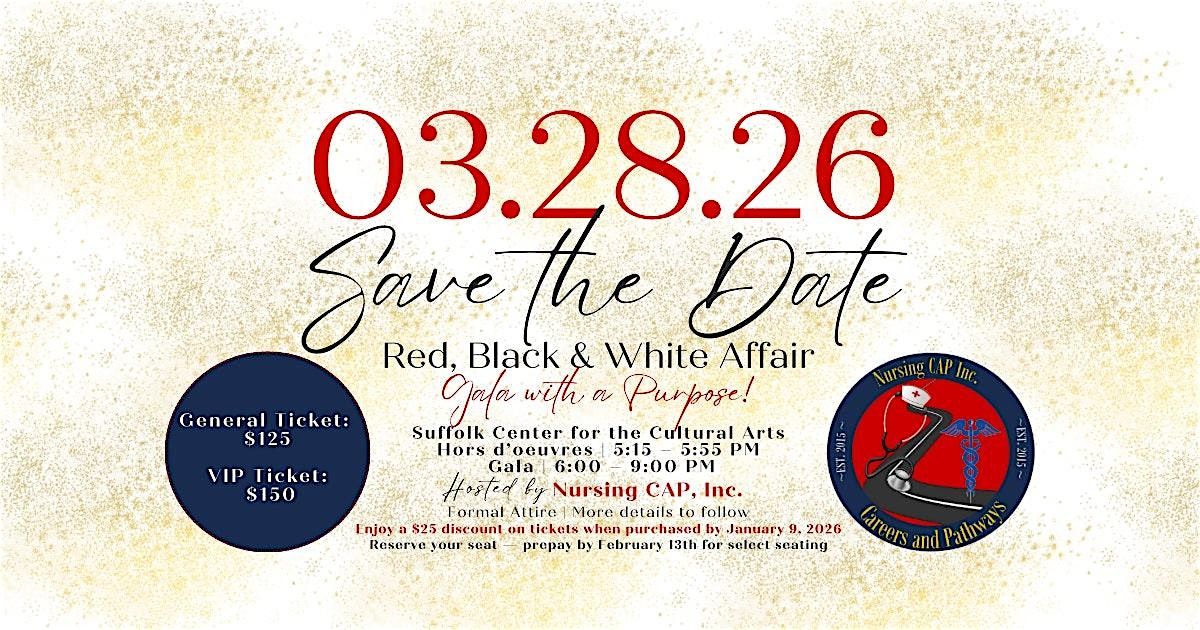 Join us for an elegant evening at the Suffolk Center for Cultural Arts in Suffolk, Virginia, as we raise funds to support Nursing CAP programs and initiatives for the 2026–2027 program year.