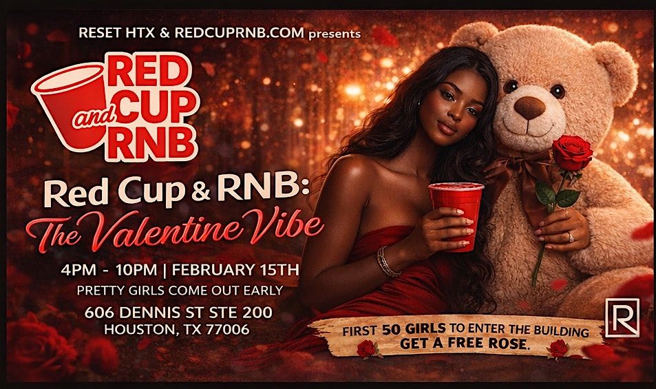 Meet us at Reset Houston on Sunday, February 15th for the Red Cup & RNB Day Party — 4PM–10PM (21+ only) with one of the best views in H-Town.