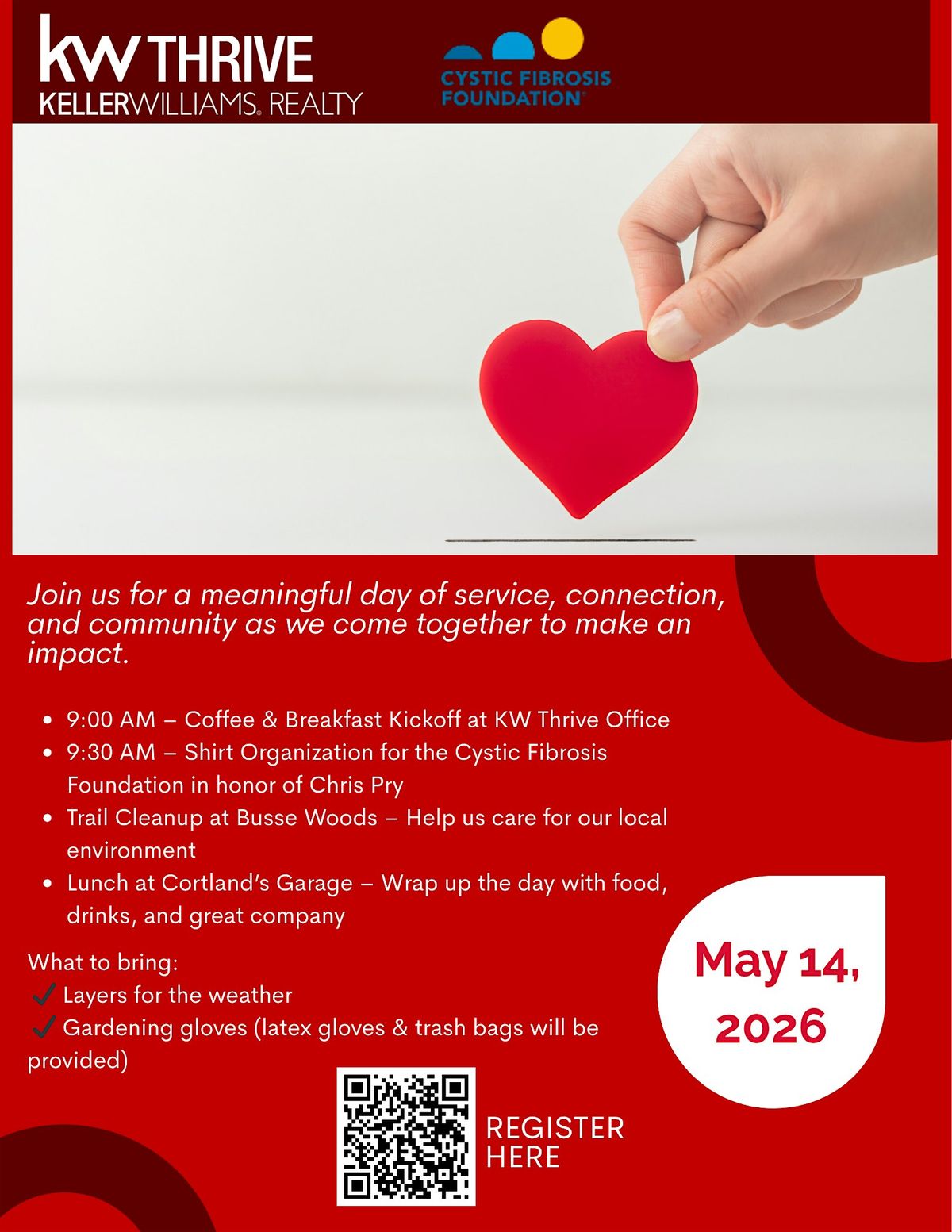 We’re kicking off the morning with coffee and breakfast at our KW Thrive office before coming together to organize shirts for the Cystic Fibrosis Foundation in honor of Chris Pry.