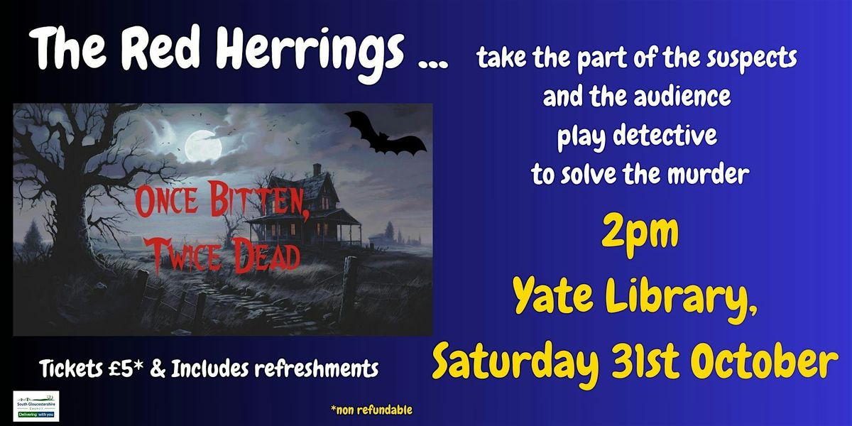 Join us at Yate Library for an afternoon of intrigue, drama, and deduction as The Red Herrings bring their immersive M**der mystery to life. It’s up to you, the audience, to help interrogate the suspects and uncover the truth.