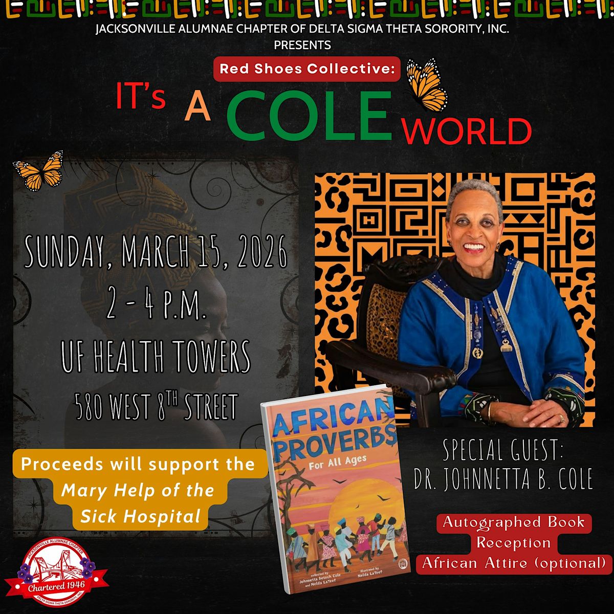 Book Reading and Arts & Letters celebration featuring Dr. Johnnetta B. Cole's new book- African Proverbs for all Ages with donations benefiting the Mary Help of the Sick Mission hospital in Thika, Kenya.
