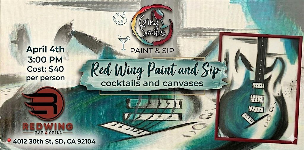Shake up your creativity, one sip at a time at Red Wing Bar & Grill: Cocktails & Cavas! Join us in person for a chill time of painting a beautiful abstract guitar, sipping on your favorite cocktails and burgers, and letting your creativity flow on the canvas. Whether you're a pro or just wanna try something new, this day is all about good vibes and great art. Grab your friends and come make some colorful memories with GinaSmiles Paint & Sip!