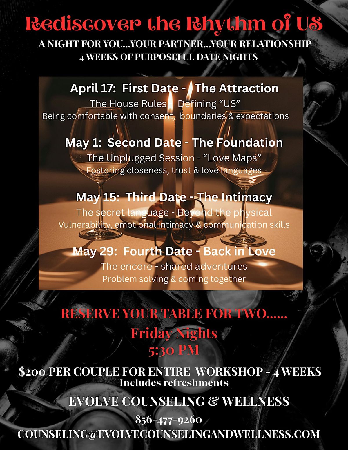 Connection takes time — and sometimes, it needs a little space to be nurtured. This biweekly couples group is designed to help you slow down, reconnect, and create a more meaningful kind of “date night.”Join us starting April 17th at 5:30 PM through May 29th for guided support, intentional conversations, and space to strengthen your relationship. For couples looking to reconnect