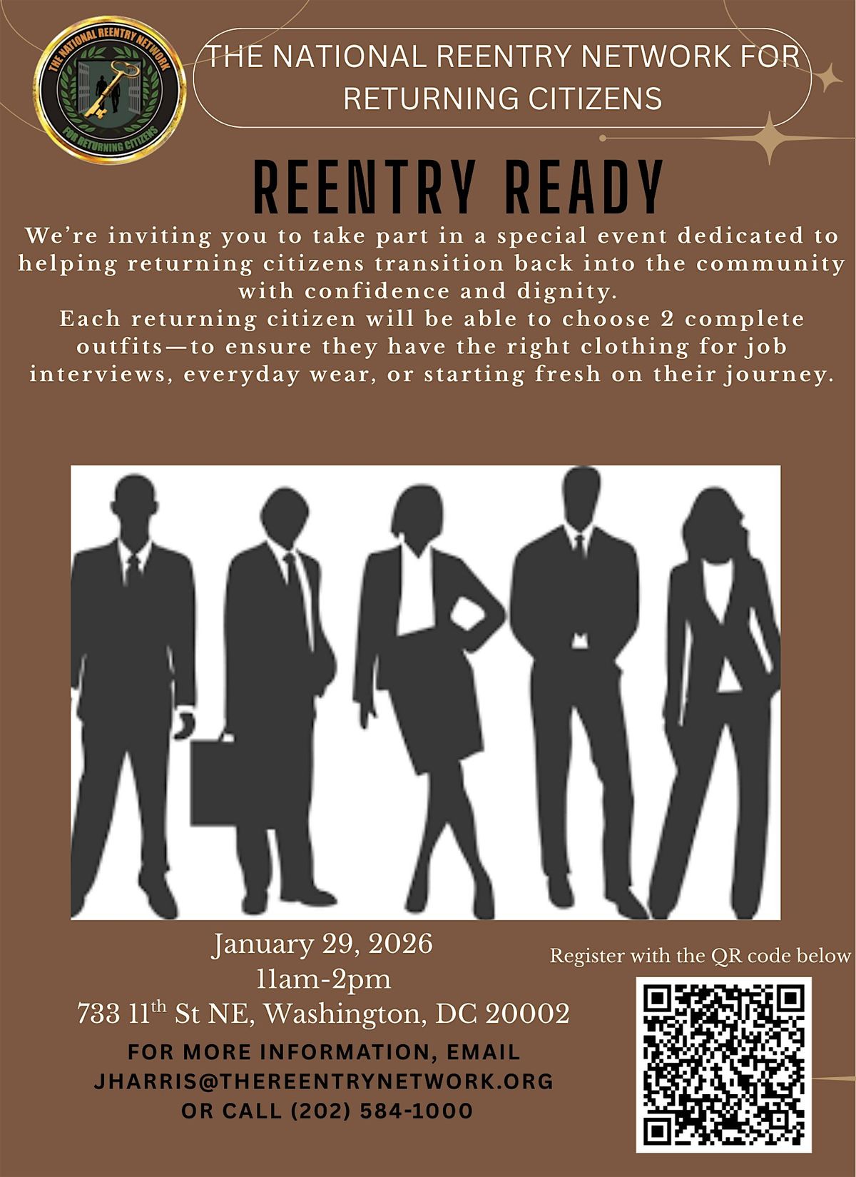 We’re inviting you to take part in a special event dedicated to helping returning citizens transition back into the community with confidence and dignity. Each returning citizen will be able to choose 2 complete outfits—to ensure they have the right clothing for job interviews, everyday wear, or starting fresh on their journey.