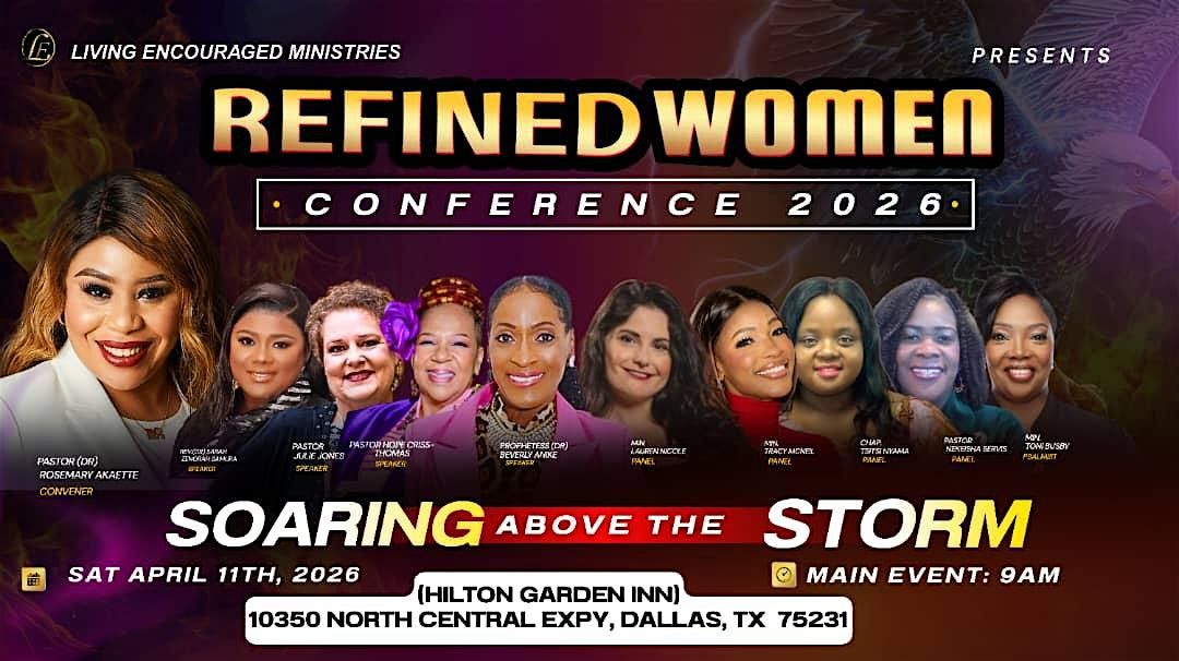 REFINED WOMEN CONFERENCE 2026, is a gathering of women to ignite faith and release power to SOAR ABOVE THE STORM OF LIFE hindering our destiny and purpose. It will be an atmosphere of Worship, Prayers, Healing, Restoration and Enpowerment!