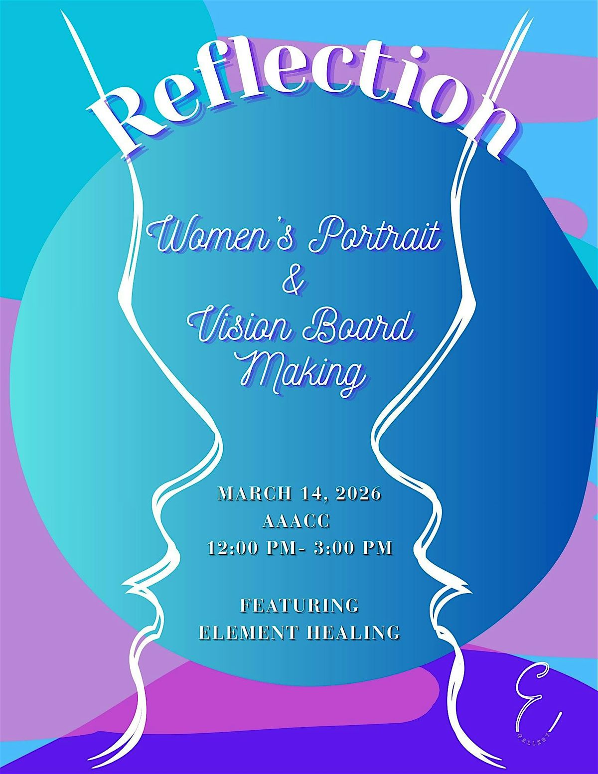 Info: A healing experience crafted for women on their self reflection journey. Embrace your beauty with a self portrait and manifest the life you want with a vision board to match. Guided steps by artist and alchemist, Element.