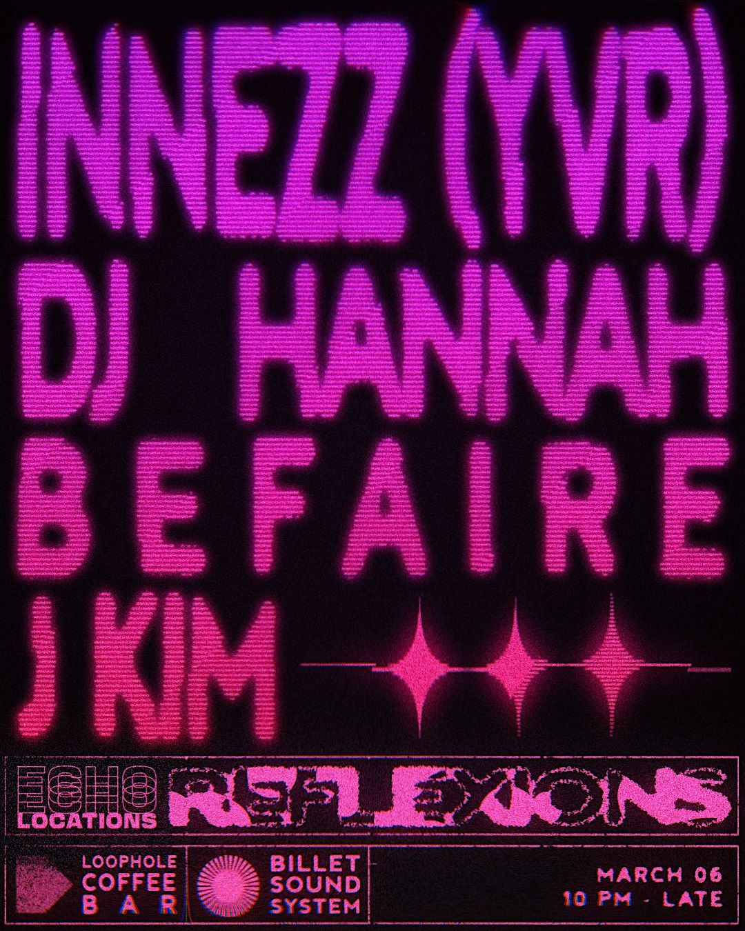 A Vancouver-based DJ, producer, and label owner shaped by years in the underground club circuit. Her versatile sets move between high-energy club pressure and psychedelic after-hours territory. She’s performed at festivals and respected venues locally and internationally, sharing stages with a wide range of artists. Founder of Azul Records and host of a community radio show, INNEZZ continues to expand her catalogue, with a self-produced EP on the way.