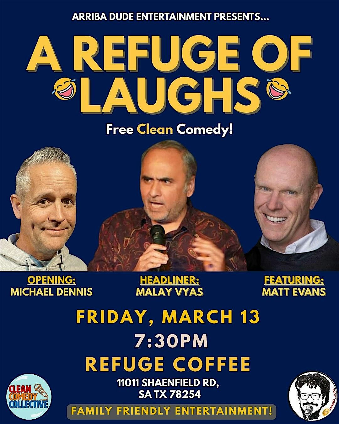 Join us at Refuge Coffee for a night of humor!