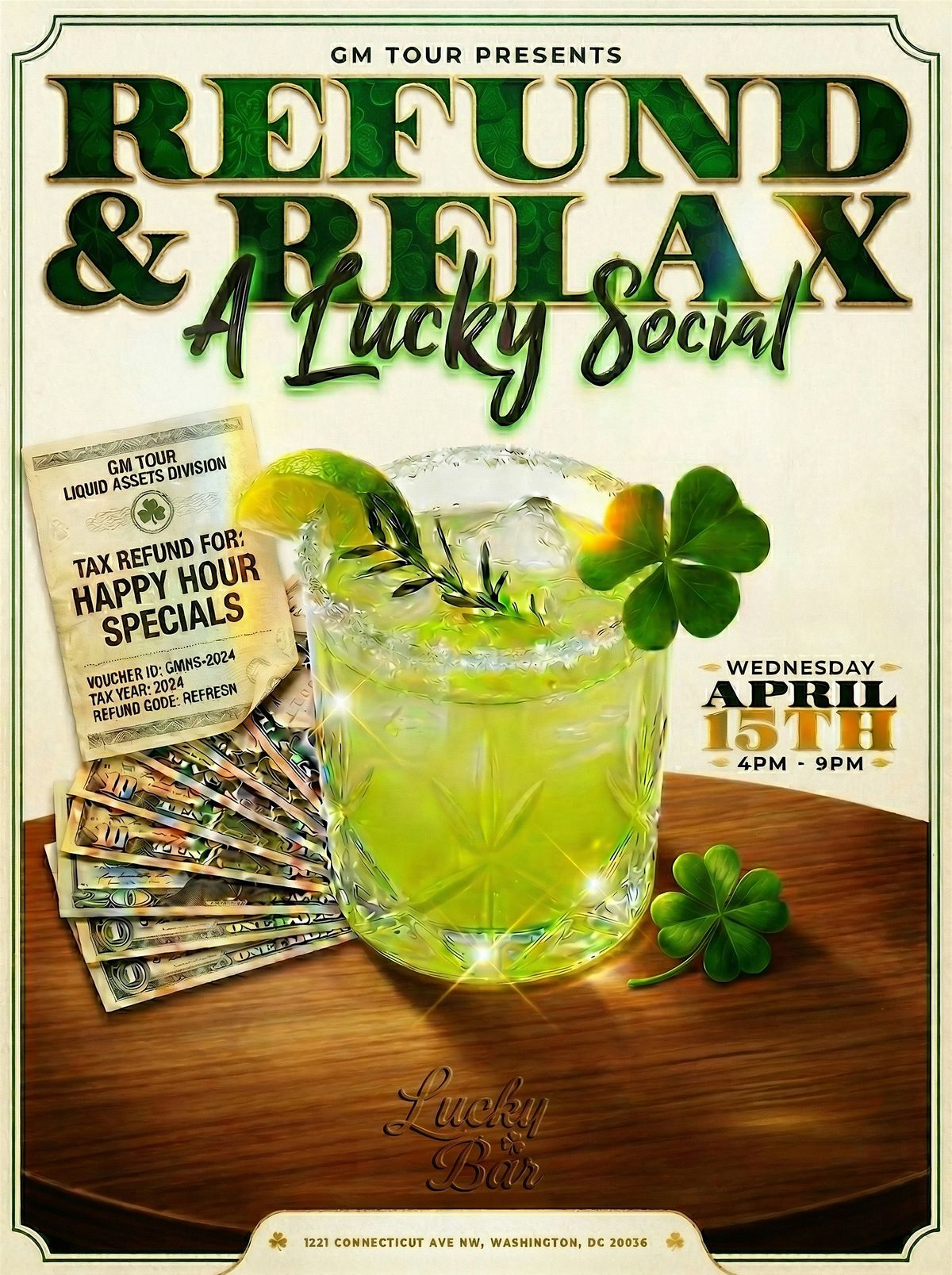 Join us on Wed, Apr 15th, 2026 at 4:00 PM for an evening of fun and relaxation. Let's unwind and celebrate getting that refund check!
