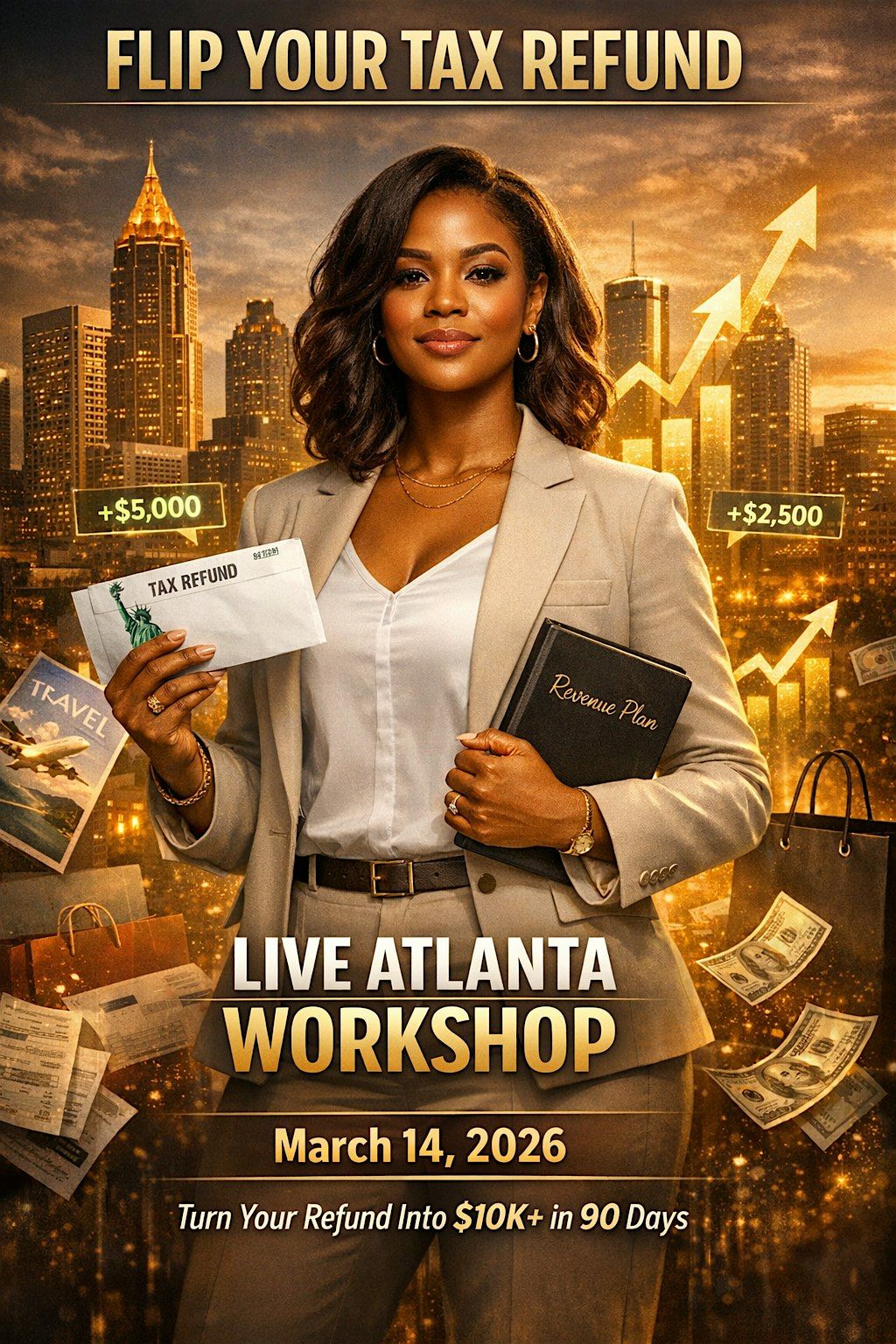 Join MzB — entrepreneur, tax professional, and founder of The Melanin Boardroom — for a powerful in-person workshop designed to help you turn your tax refund into real income.