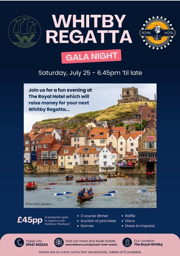 Raising Funds for the Whitby Regatta - Gala DinerĀ in The Royal Ballroom - July 25th - 6.45pm3 course Meal