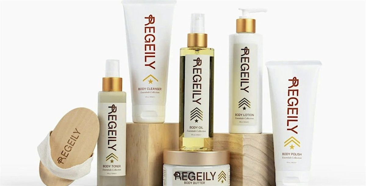 Shop luxurious face and body skincare from black-, woman-, veteran-owned skincare line Regeily!