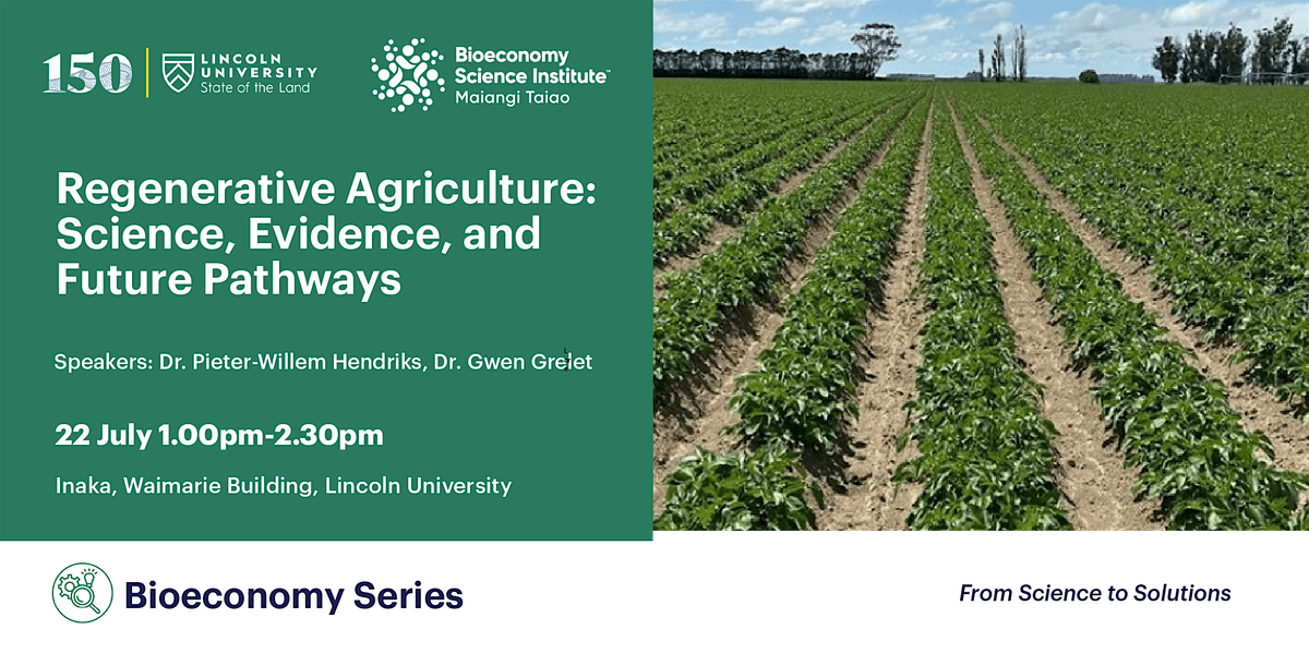 Dr Pieter-Willem Hendriks (Lincoln University) will share insights from his research on soil–plant interactions and land-use systems that support long-term sustainability. Dr. Gwen Grelet (Bioeconomy Science Institute) will highlight the role of innovation, technology, and the wider bioeconomy in supporting regenerative approaches.