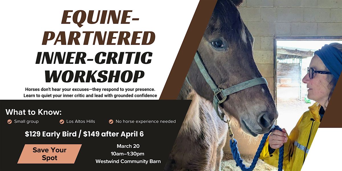 Join us for a hands-on morning at Westwind Barn in Half Moon Bay, where you'll learn a practical framework for transforming self-doubt into grounded leadership—with horses as your teachers.