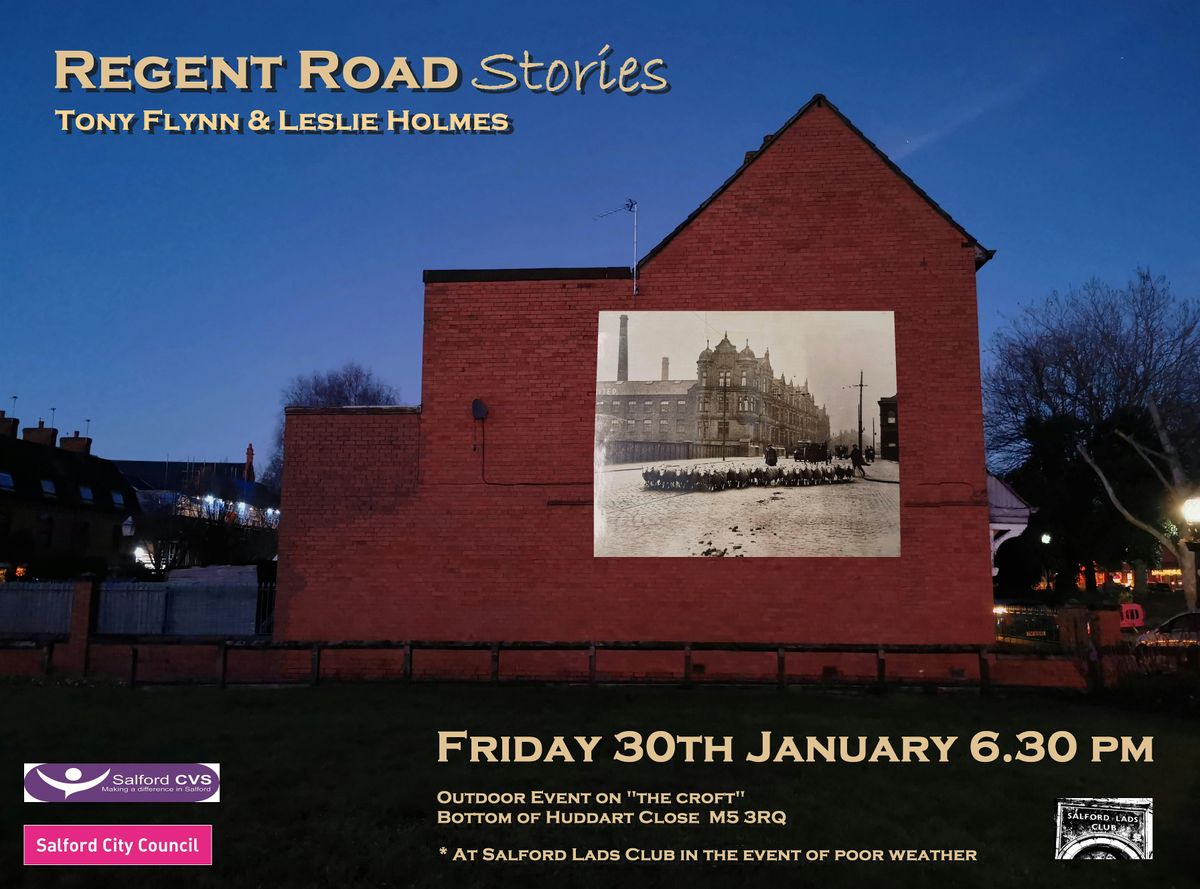 Historic photographs will be projected onto the buildings where they were originally taken, accompanied by storytelling from Tony Flynn and Leslie Holmes, bringing Salford’s past vividly back to life.