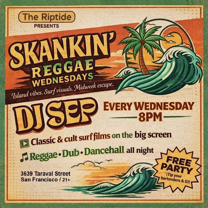 Every Wednesday: dub, reggae & dancehall with DJ Sep, plus surf movies on the big screen at The Riptide (SF). 8 pm to midnight / 21+ / FreeAbout this Event