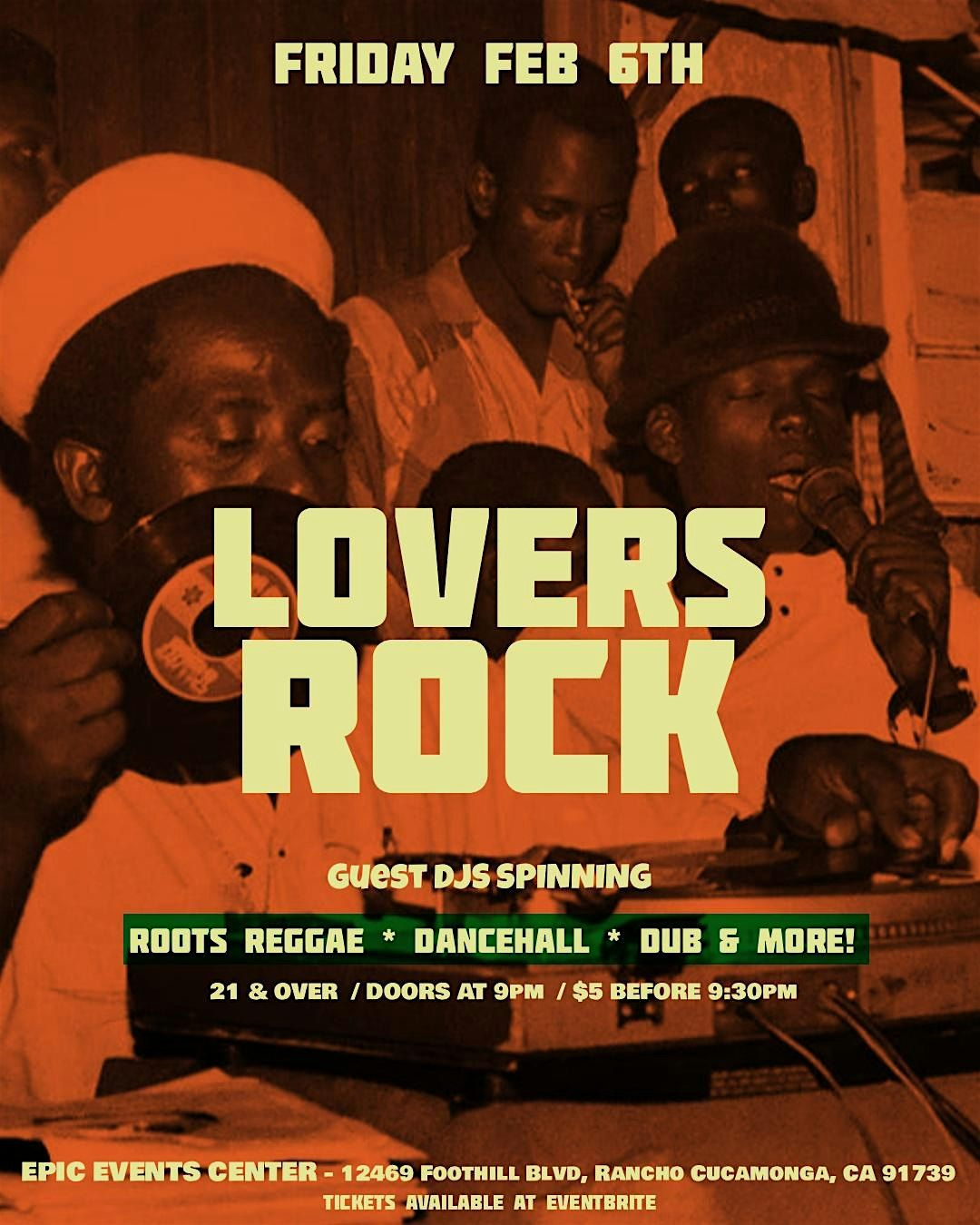 Friday Feb 6th at the Epic Events Center in Rancho Cucamonga! Djs spinning Roots Reggae, Dancehall, Dub, Rockers & more!About this Event