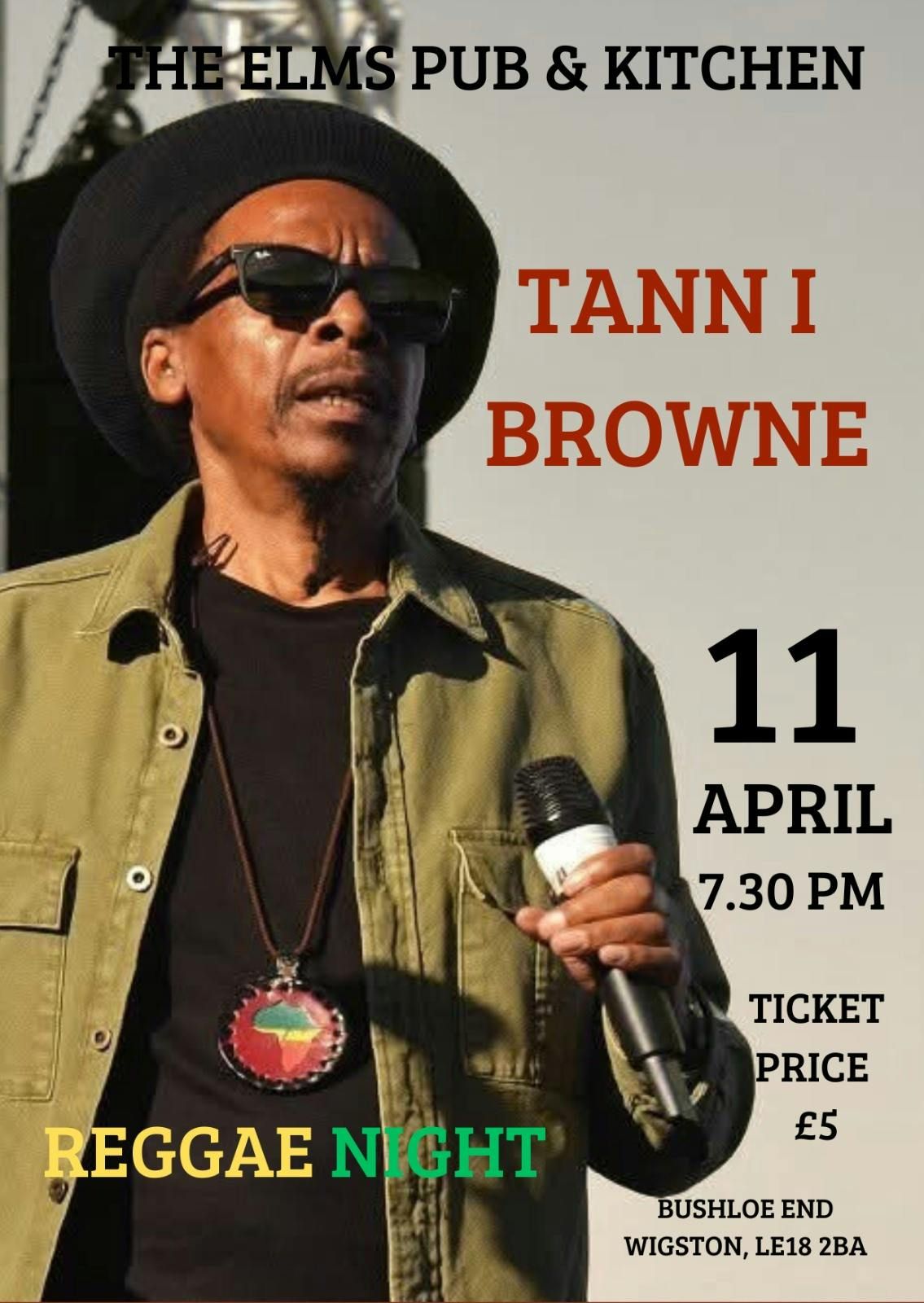Get ready for an uplifting night of roots, rhythm, and reggae vibes as the legendary TANN I BROWNE performs live at The Elms Pub & Kitchen.Known for his powerful voice, conscious lyrics, and authentic reggae sound, Tann I Browne delivers a live performance filled with soul, energy, and timeless reggae classics. Expect deep grooves, positive vibrations, and an atmosphere that brings people together through music.