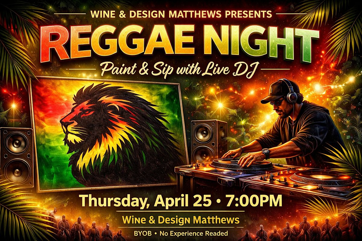 Join us at Wine & Design Matthews for a Reggae Night paint and sip experience featuring a live DJ spinning all night.