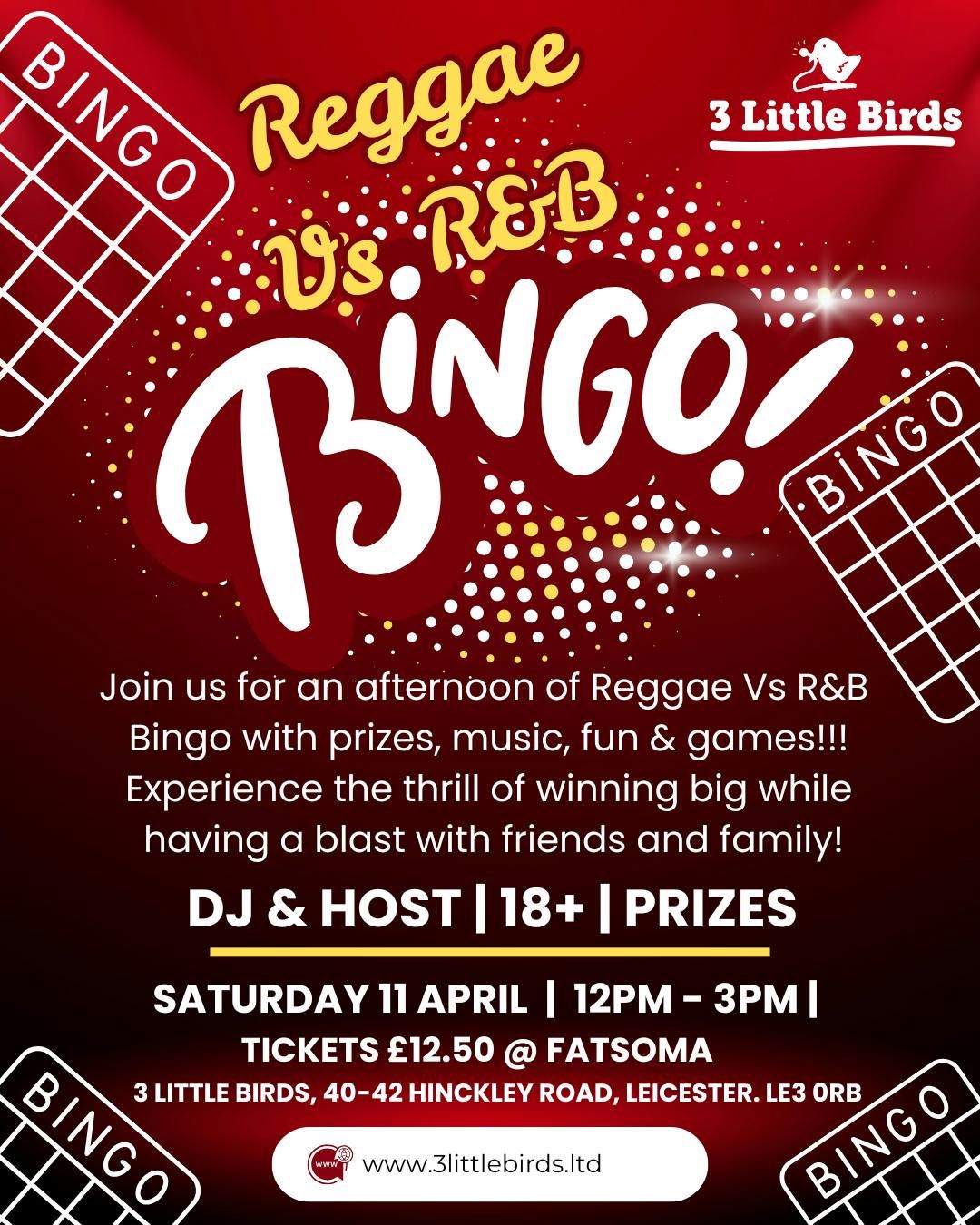 It's the ultimate showdown – Reggae vs R&B Bingo is coming to 3 Little Birds this Saturday afternoon! Grab your mates, settle the debate once and for all, and compete for epic prizes while vibing to the best sounds. Whether you're Team Bob Marley or Team Usher, this is your moment. Expect good company, flowing cocktails, and an afternoon you won't forget. Limited spots available – book now and bring the good vibes!"Disclaimer: