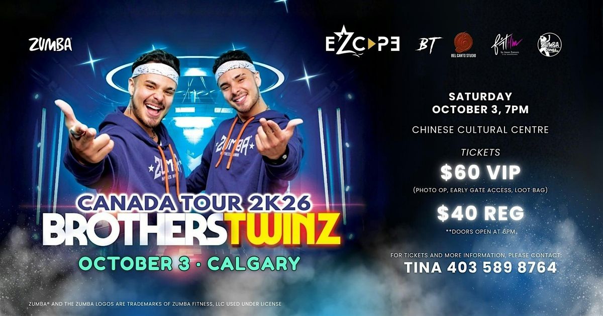 Known worldwide for their explosive energy, signature style, and electrifying choreography, the Brotherstwins have taken the global Zumba stage by storm—featured in ZIN™ Volumes 90, 106, and 121. Now, they’re coming to Calgary for an unforgettable night of dance, music, and pure vibes!