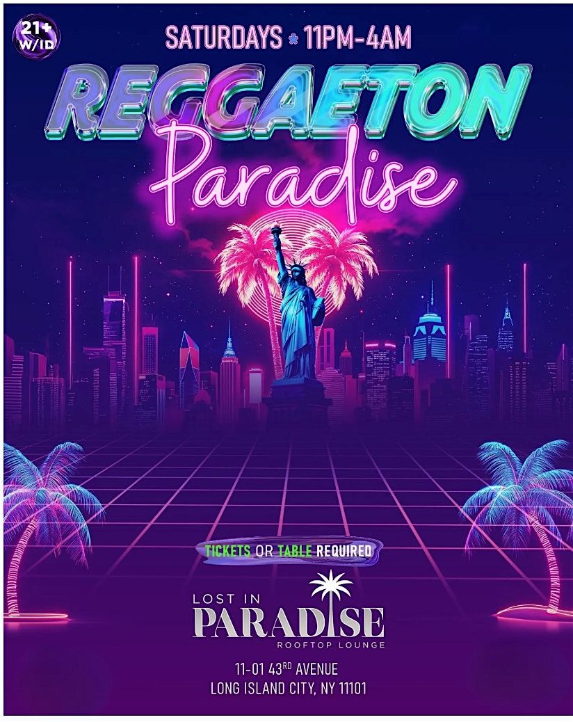 Get ready for Reggaeton Paradise, the rooftop experience that brings the heat of Latin nightlife to Queens! Each and Every Saturday , we take over Lost in Paradise Rooftop with DJs spinning the hottest Reggaeton, Latin Trap, and Dembow hits all night long.