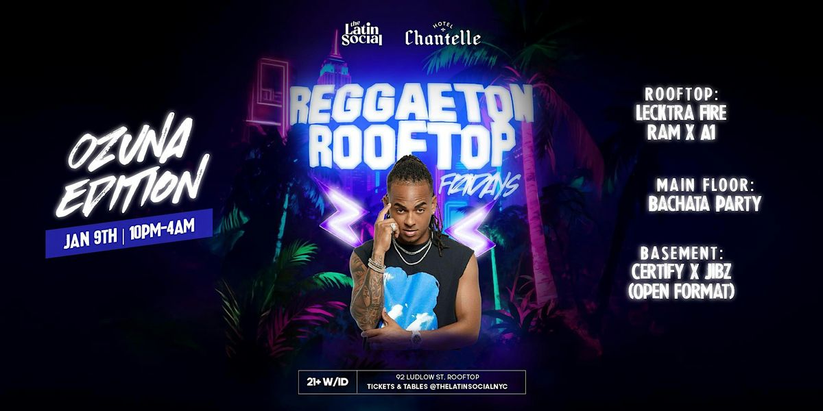 This Friday, January 9th, it's Ozuna night at Reggaeton Rooftop Fridays at Hotel Chantelle — three floors, a massive DJ lineup, and the most energetic Reggaeton & Latin rooftop vibe in NYC. If you’re looking for the hottest Friday party in NYC, this is the Reggaeton & Dembow destination.