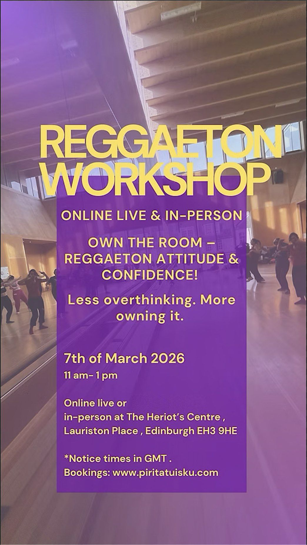We’ll learn a bold Reggaeton choreography in a way that helps you pick it up quicker, feel grounded in the basics, and then level it up with that A-game flavour: musicality, sharpness, sass, and the delicious “I’m here” energy. 😈🔥