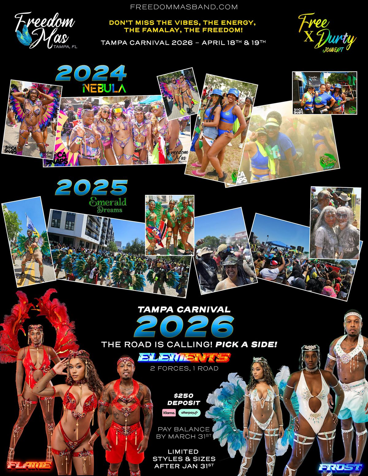 #PickaSide and Register today!Celebrate 5 years of vibes, energy, famalay, and FREEDOM with Freedom Mas Tampa. www.Freedommasband.com