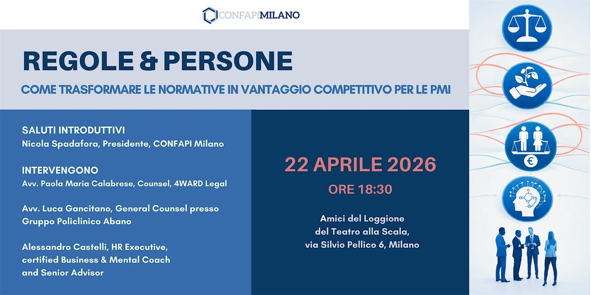 Su questi temi si concentrerà REGOLE & PERSONE, un incontro pensato per aiutare le PMI a cambiare prospettiva: trasformare compliance e trasparenza in asset strategici e leva reputazionale.