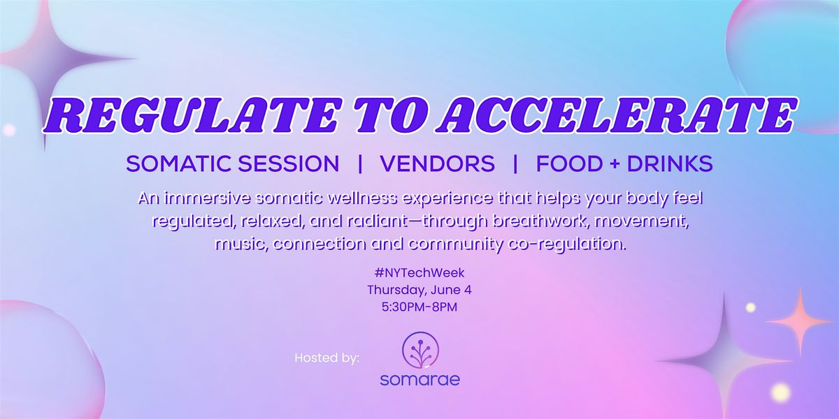 Join us for Regulate to Accelerate! Somarae's interactive somatic wellness experience designed for high-performers who are always on and ready for a smarter way to reset.