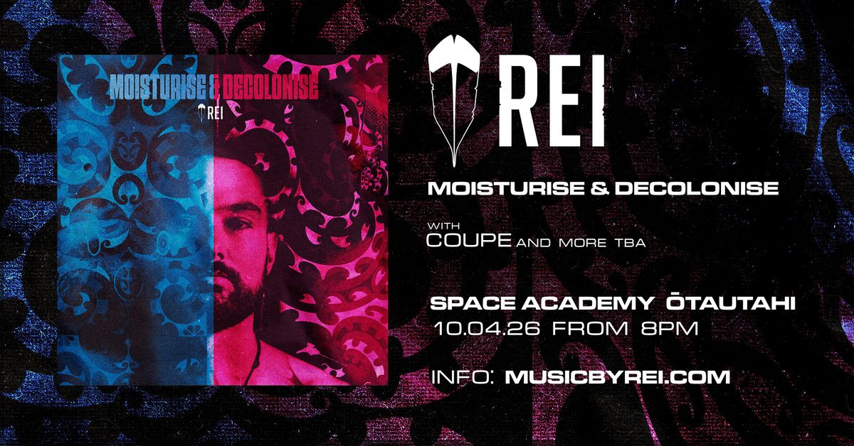 Rei brings his powerful new album Moisturise & Decolonise to the stage with a vibrant, high-energy live show blending kaupapa-driven haka raps, tropical pop, electronic beats and bilingual storytelling. The 15-track album explores the duality of cultural reclamation and self-care — encouraging audiences to reconnect with identity while protecting their wairua through joy, movement and music.