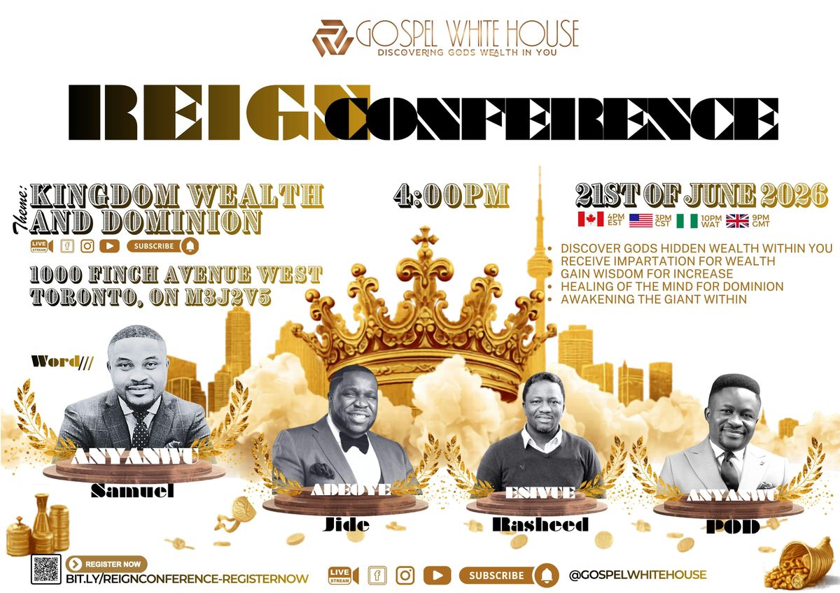 Reign Confrence is the exact place you need to be to understand your unique and God driving potential. From the workship to the word, everything will be geard to Empowering the dream in you. At this conference you'll be empowereed to;
