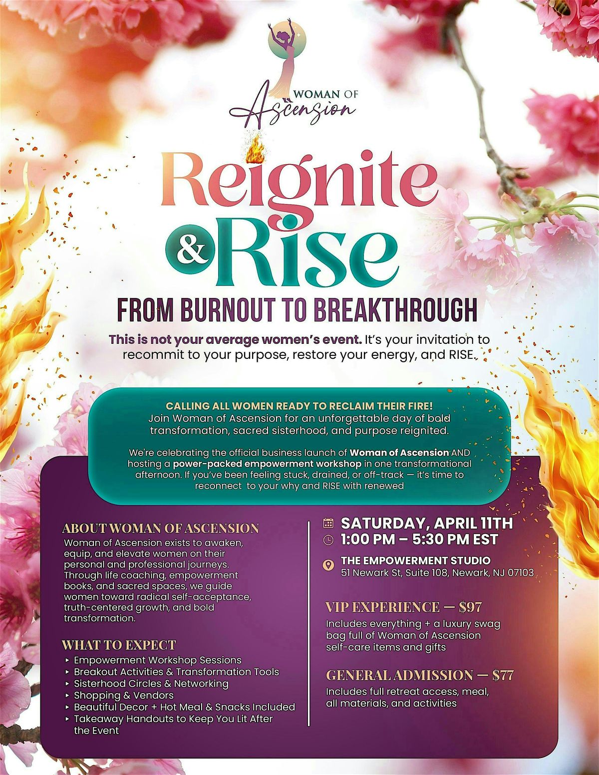 Hosted by Woman of Ascension™, this event is for women who are ready to move from burnout to breakthrough, reclaim their energy, and boldly step into the next version of themselves — regardless of past pain, setbacks, or distractions.