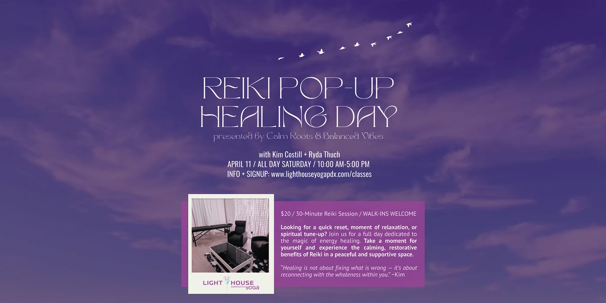 REIKI POP-UP HEALING DAY presented by Calm Roots + Balanced Vibes with Kim Costill + Ryda Thuch @ Lighthouse Community Yoga PDX (Wellness Room) / $20 30-minute REIKI sessions / APRIL 11 / SATURDAY / 10:00 AM-5:00 PM / *WALK-INS WELCOME ALL-DAY*