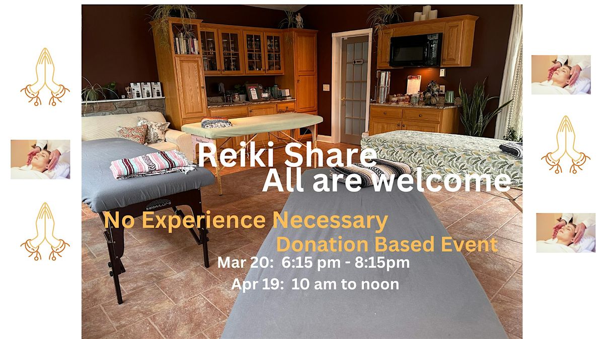 Join us to experience the deep relaxation and healing that occurs during a Reiki Share. No experience needed. All are welcome.