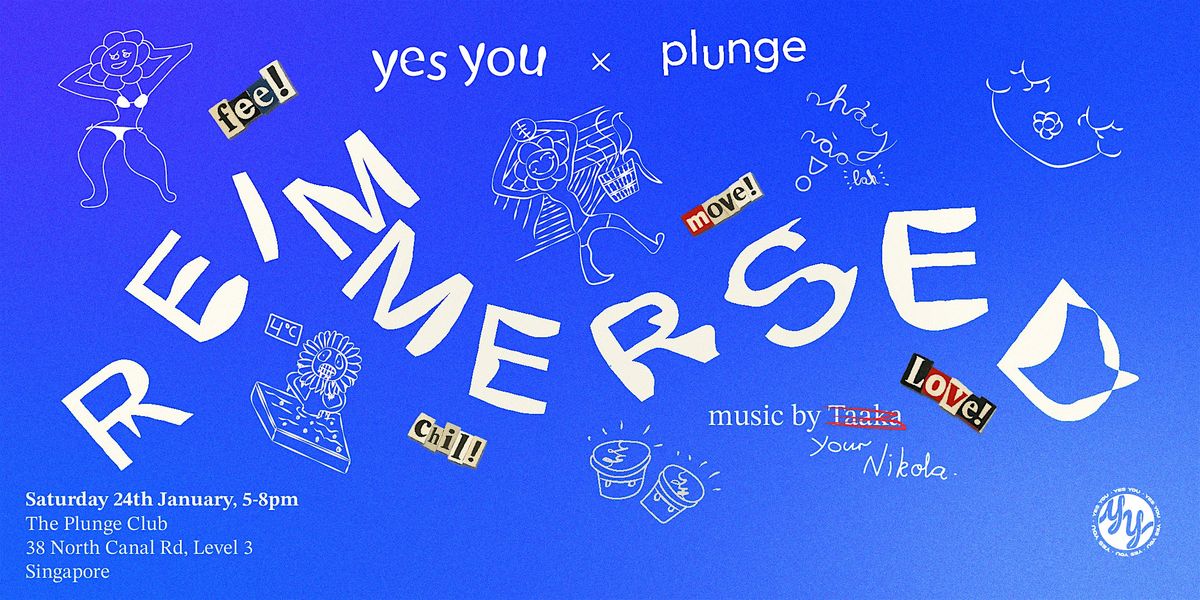 REIMMERSED. A long-awaited collaboration between long time friends Plunge Club Singapore and YES YOU, the co-founders of Immersion—Singapore’s original sober rave movement. This time, we are putting music front and centre - with Your Nikola (You once knew him as Taaka) taking You through a 3 hour journey of dance and movement to shake those endorphins out.
