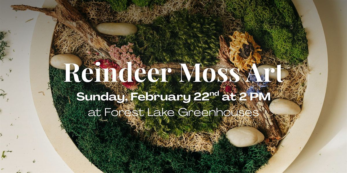 Come join us for a fun afternoon at Forest Lake Greenhouses to create beautiful art pieces using reindeer moss and other types of Moss! No experience necessary, just bring your creativity and enthusiasm. Let's get our hands dirty and make some unique art together.