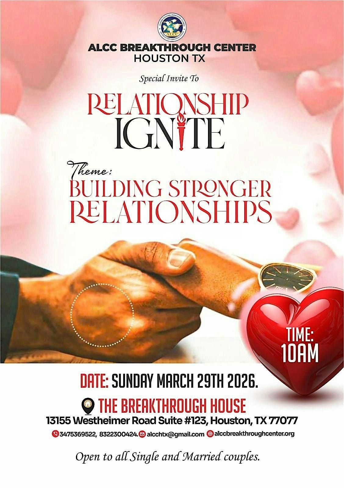 Join us for our Relationships Ignite Service — a powerful and transformative experience designed to strengthen, restore, and elevate your connections. Whether you’re single, dating, engaged, or married, this service is for YOU.