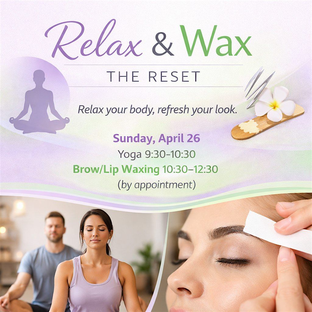 Join us for a calming yoga session to release tension and recharge, followed by an optional brow or lip waxing appointment. Come stretch and relax with us, then stick around for a quick brow or lip wax to clean things up before heading out.