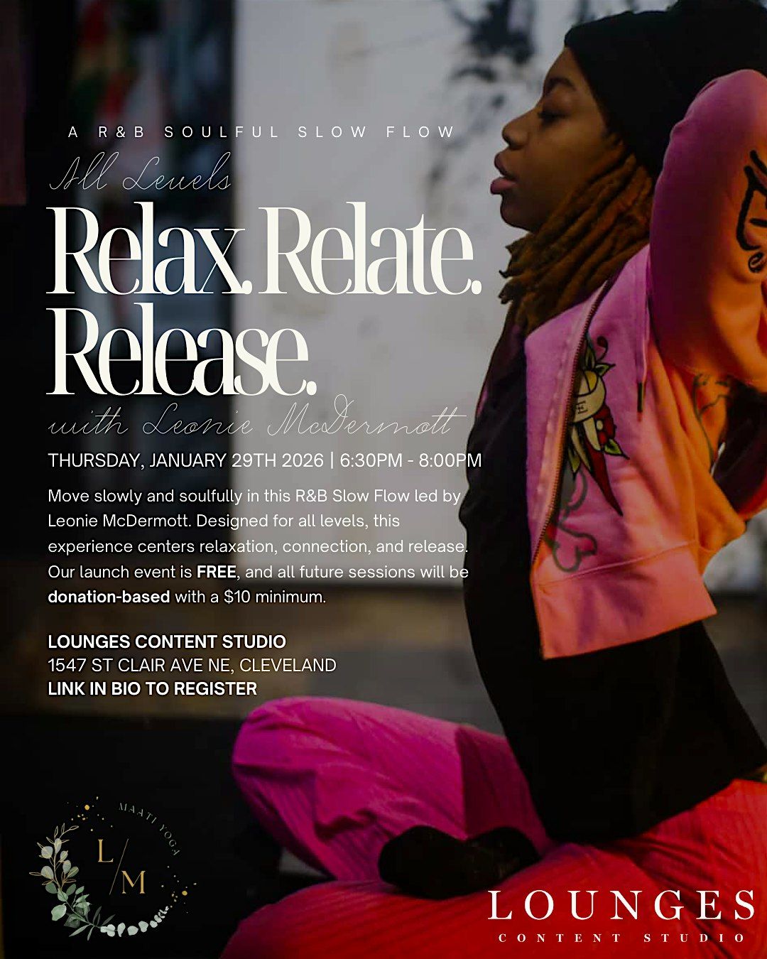 Relax, Relate, Release. is a soulful yoga experience designed to help you slow down, soften your body, and let go.