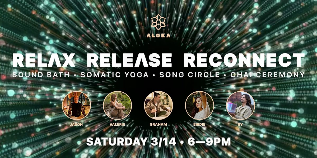[Aloka Sound Bath, Somatic Movement, Sacred Song Circle, Chai Ceremony]
