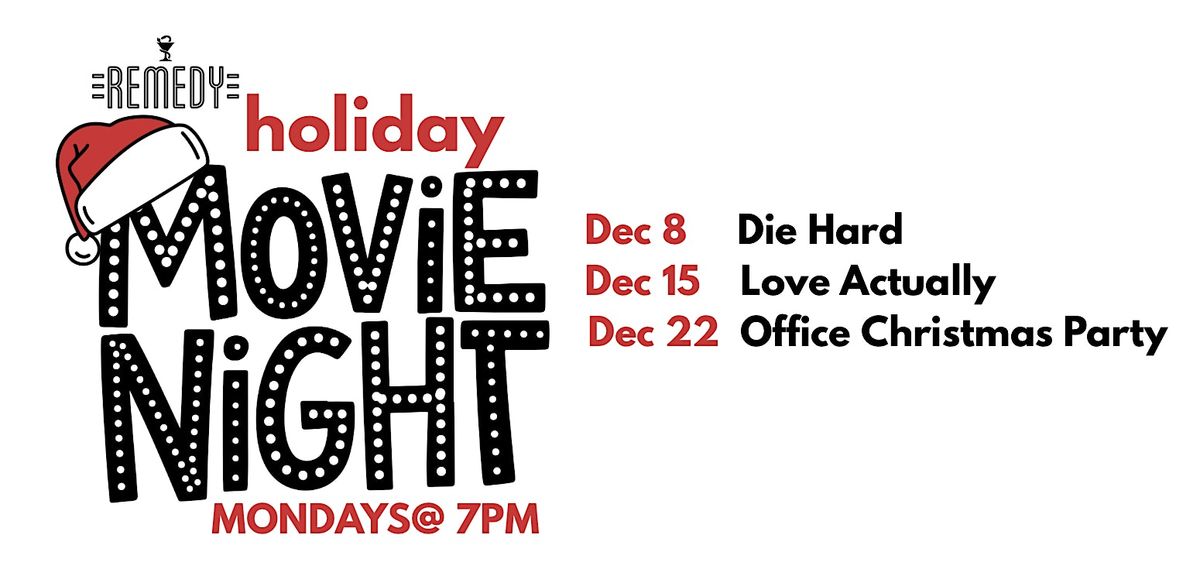 Lights, camera, holiday action! 🎬✨ Get ready to cozy up with us every Monday night in December at 7 PM for Holiday Monday Movie Night at Remedy! 🎅🍿