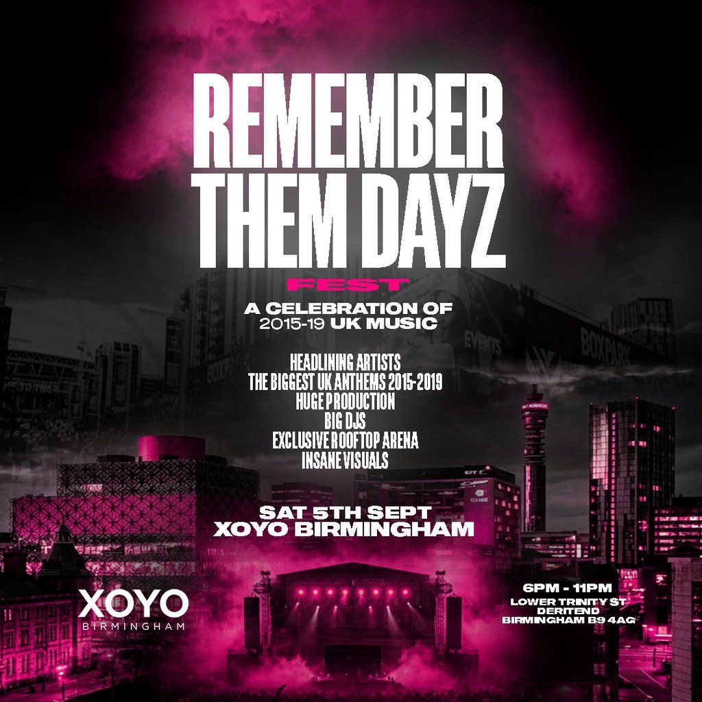 REMEMBER THEM DAYZ - A Celebration of UK 2015 - 2019 Music, Headline artists TBAMusic Genres : Rap, Hip Hop, Grime, Afrobeat, Trap
