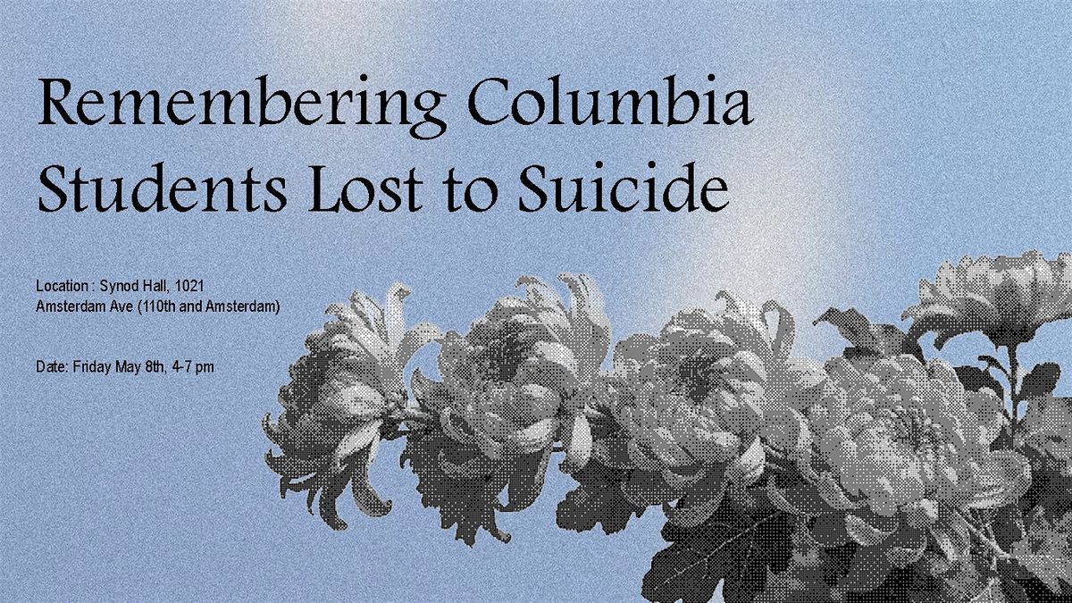 Join us Friday, May 8th from 4-7pm to remember the lives of Columbia and Barnard students who passed from suicide during their time as a student here, and have a conversation about how we as college students can speak up about mental health struggles.