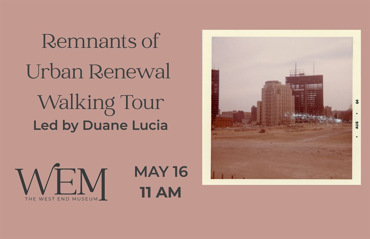 Join former Museum curator, Duane Lucia, on this one and a half hour tour of the pieces of the West End that urban renewal left behind.