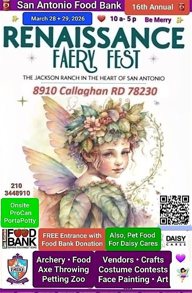 We invite you to join the 16th annual Renfaire for the SA Food Bank💜 Renaissance Faery Fest, March 28 + 29🧚♂️️