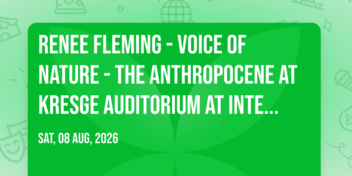 ✨ Discover the extraordinary at Renee Fleming - Voice of Nature - The Anthropocene at Kresge Auditorium at Interlochen Center, where magic meets reality in ways you've never imagined! 🏛️ Set in Kresge Auditorium at Interlochen Center nestled in bustling Interlochen, MI, this event promises to be a landmark occasion. 📅 Taking place on August 8th, 2026 at 07:30 PM, it's going to create an atmosphere where every moment becomes a cherished memory. 🌟 Immerse yourself in an experience crafted with attention to every detail, designed to surprise and delight at every turn. They have worked tirelessly to ensure this event exceeds all expectations, bringing together elements of entertainment, innovation, and pure joy. 🎊 Don't miss your chance to be part of this remarkable journey!